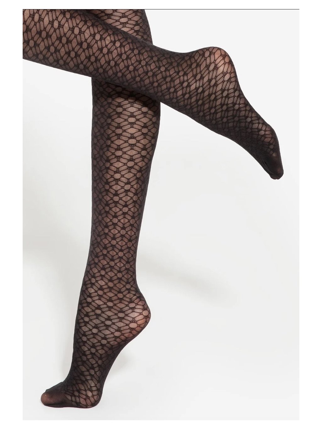 Hlavním motivem tohoto modelu punčocháčů je černá krajka. Složité vazby tvoří originální vzory, které dodají punčocháčům jedinečný vzhled. Jsou velice pružné a měkce obepnou vaše nohy.