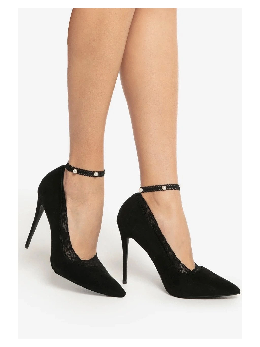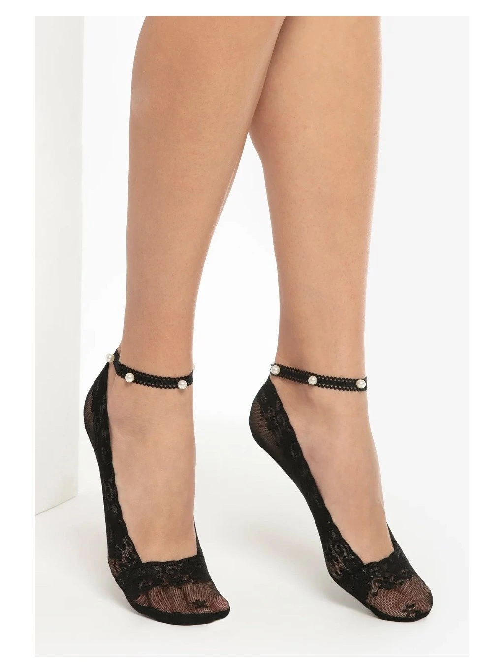 Hledáte něco odlišného? Máme pro Vás elastické krajkové balerínky s páskem kolem kotníku ozdobené perličkami. Perfektně padnou do lodiček s vysokým podpatkem nebo balerínek a Váš outfit získá originální charakter.
