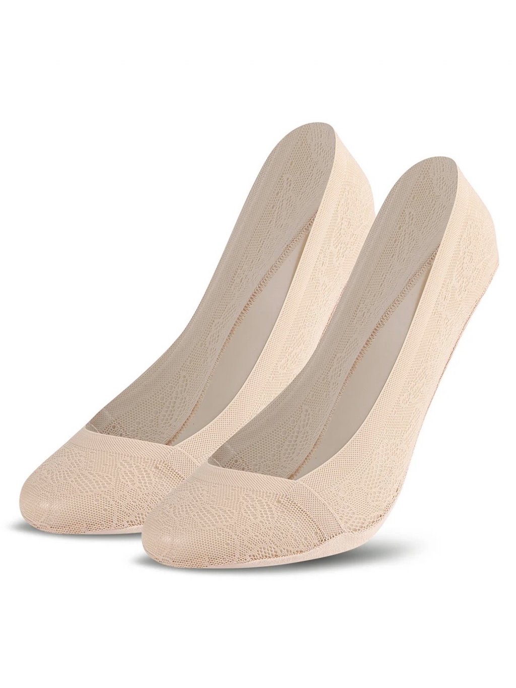 Dámské, kotníkové balerinky jsou vyrobeny z krajky s květinovým motivem.Tento model tvoří dokonalé duo s balerínkami, espadrilkami, nebo mokasínami. Silikonový pásek zaručí, že ponožky zůstanou na svém místě po celý den. Chodidlo je vyrobeno z bavlny.