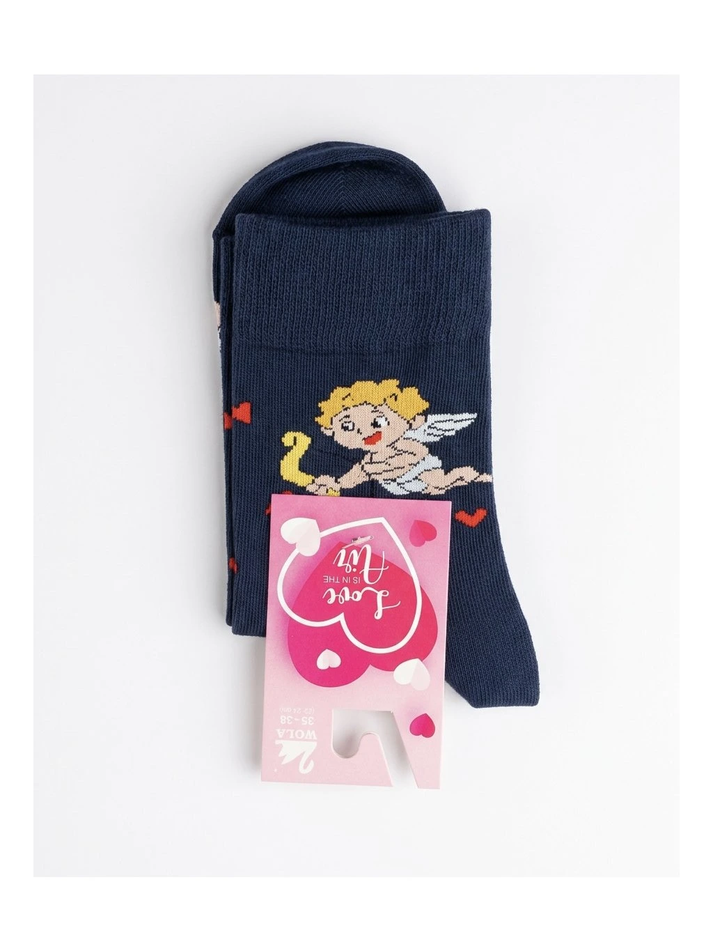 Tmavě modré bavlněné ponožky se srdíčky a andělem.