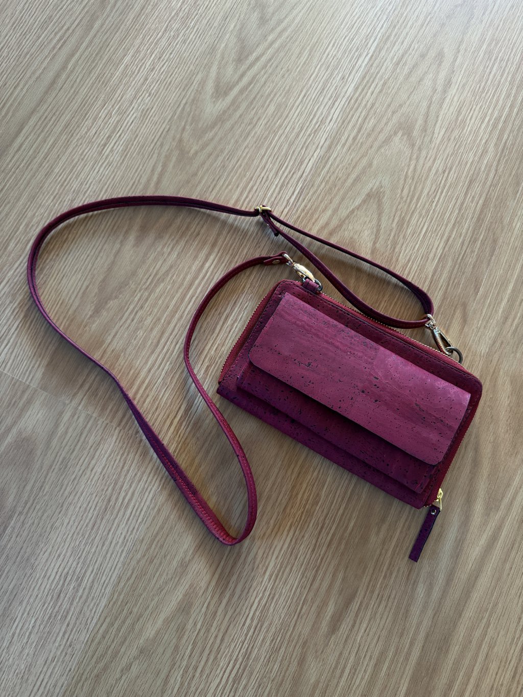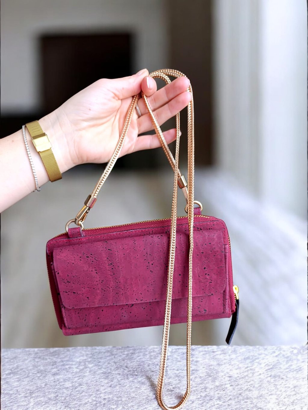 Naprosto skvělá a originální malá kabelka do města i do divadla. V přední části je kapsička, do které se vejde mobil o rozměru až 16x8 cm. V zipové části kabelky jsou dvě přihrádky plus jedna na zip a úložný prostor až na 12 karet. Je opatřena popruhem o délce 120 cm, který je stejně jako kabelka vyroben ze sametového korku. Ke kabelce můžete dokoupit řetízek, který nabízíme ve třech odstínech kovu. Tak z kabelky uděláte luxusní kousek, který si můžete vzít na večerní párty nebo do divadla a zcela určitě ohromíte. Kabelka svým vzhledem připomíná kůži a svým zpracováním zaujme na první pohled. Je originální, udržitelná, přírodní a antialergická. Krásně měkká a lehká na dotek. Tato kabelka je opatřena kvalitním zipem, takže z ní rozhodně nic nevypadne a vše budete mít hned na očích. Vyrábí se v malé dílně u nás v ČR.