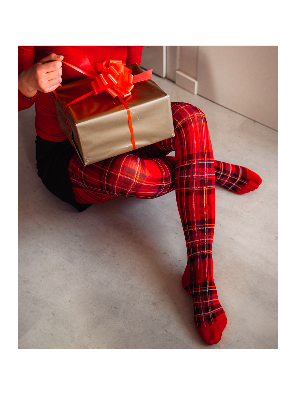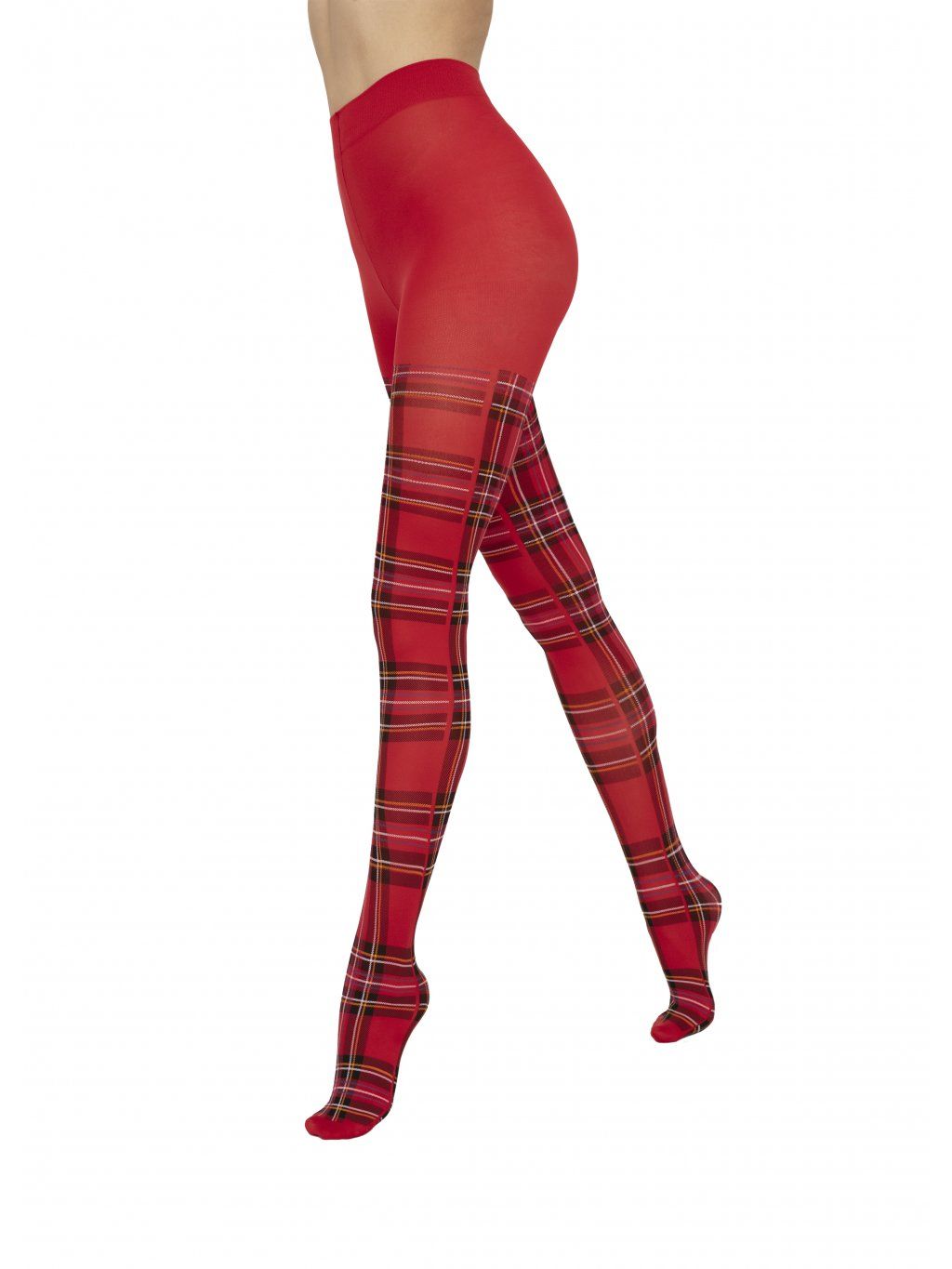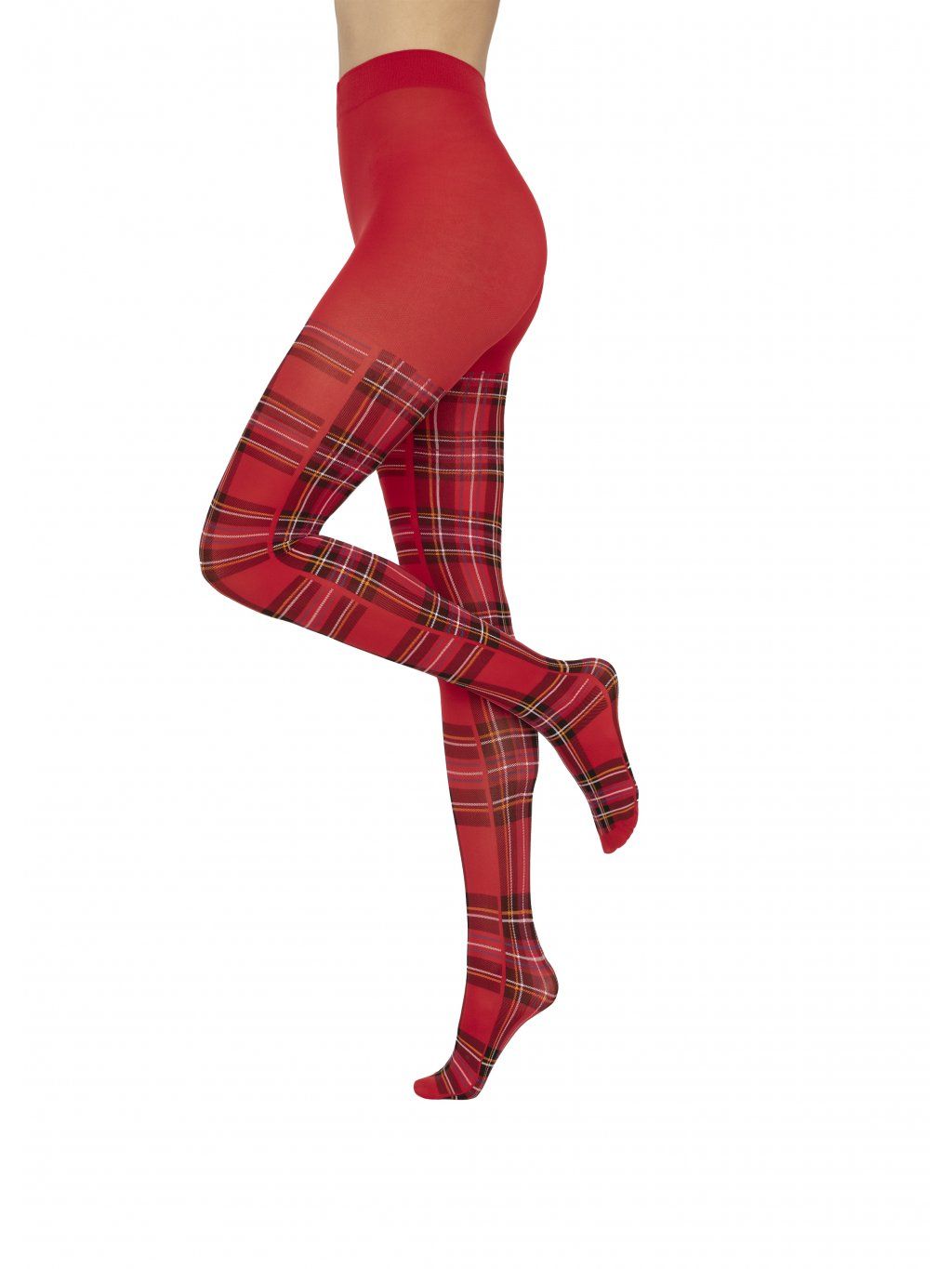 Neprůhledné punčocháče s velmi originálním vzorem červeného kárování. Zvýrazní jednoduchý styl oblečení.