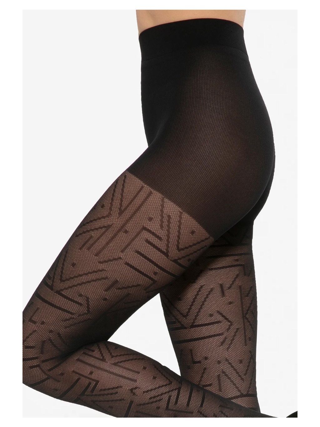 Originální punčocháče Modern 02 s geometrickým vzorem moderního umění. Vzor se skládá z vodorovných, svislých čar, teček a na pozadí se prostírá jemná síťovina. Obsahují vysoce kvalitní přízi, která je testována na škodlivé látky, což potvrzuje značka OEKO-TEX Standart 100.