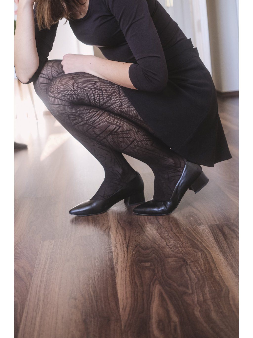 Originální punčocháče Modern 02 s geometrickým vzorem moderního umění. Vzor se skládá z vodorovných, svislých čar, teček a na pozadí se prostírá jemná síťovina. Obsahují vysoce kvalitní přízi, která je testována na škodlivé látky, což potvrzuje značka OEKO-TEX Standart 100.