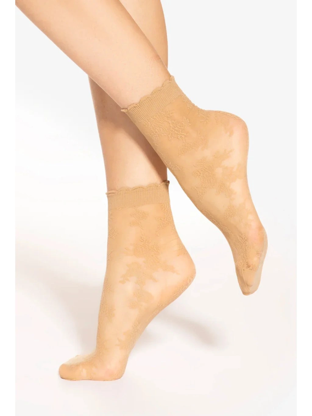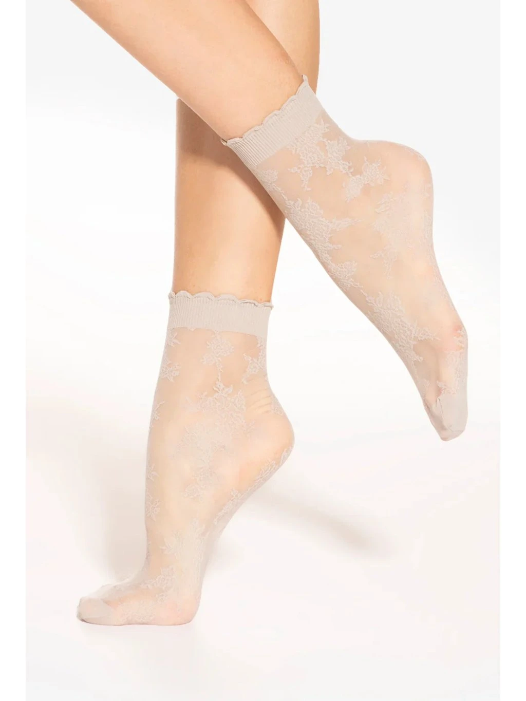 Silonové ponožky se vzorem, zesílenou špičkou a měkkým zoubkatým lemem.