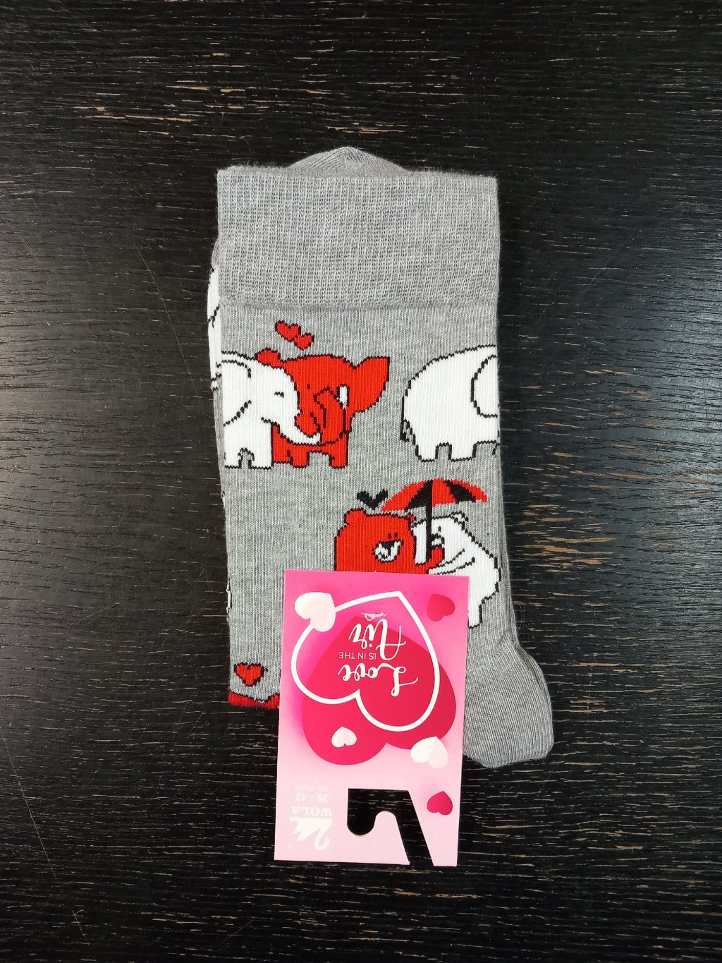 Hravé šedé ponožky pro každou dívku i ženu s obrázky slonů a koček.