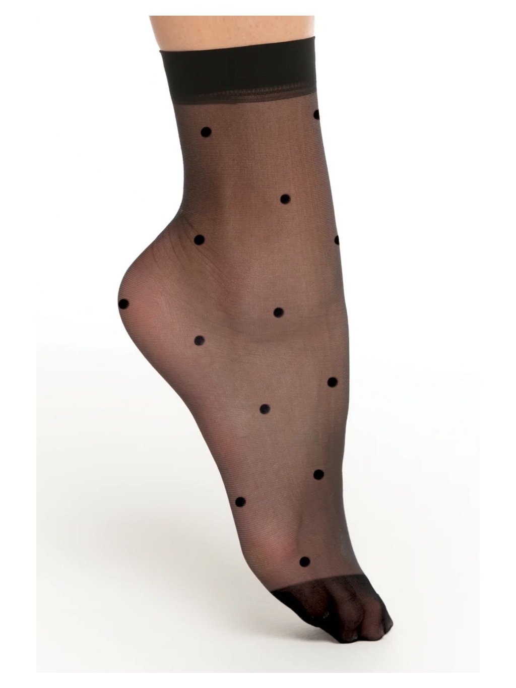 Nadčasové ponožky s puntíky zvýrazní váš outfit. Můžete je kombinovat s balerínkami i stylovými teniskami. Ponožky jsou zakončeny gumičkou, která nezpůsobuje otlaky a díky zesílené špičce se prodlouží jejich životnost.