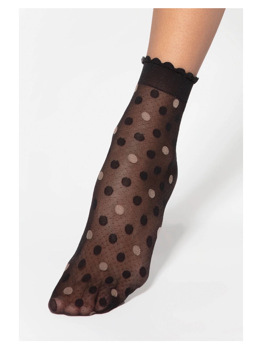 Silonové ponožky s černými a béžovými puntíky nesmí chybět v žádném šatníku, skvěle doplní celý outfit.