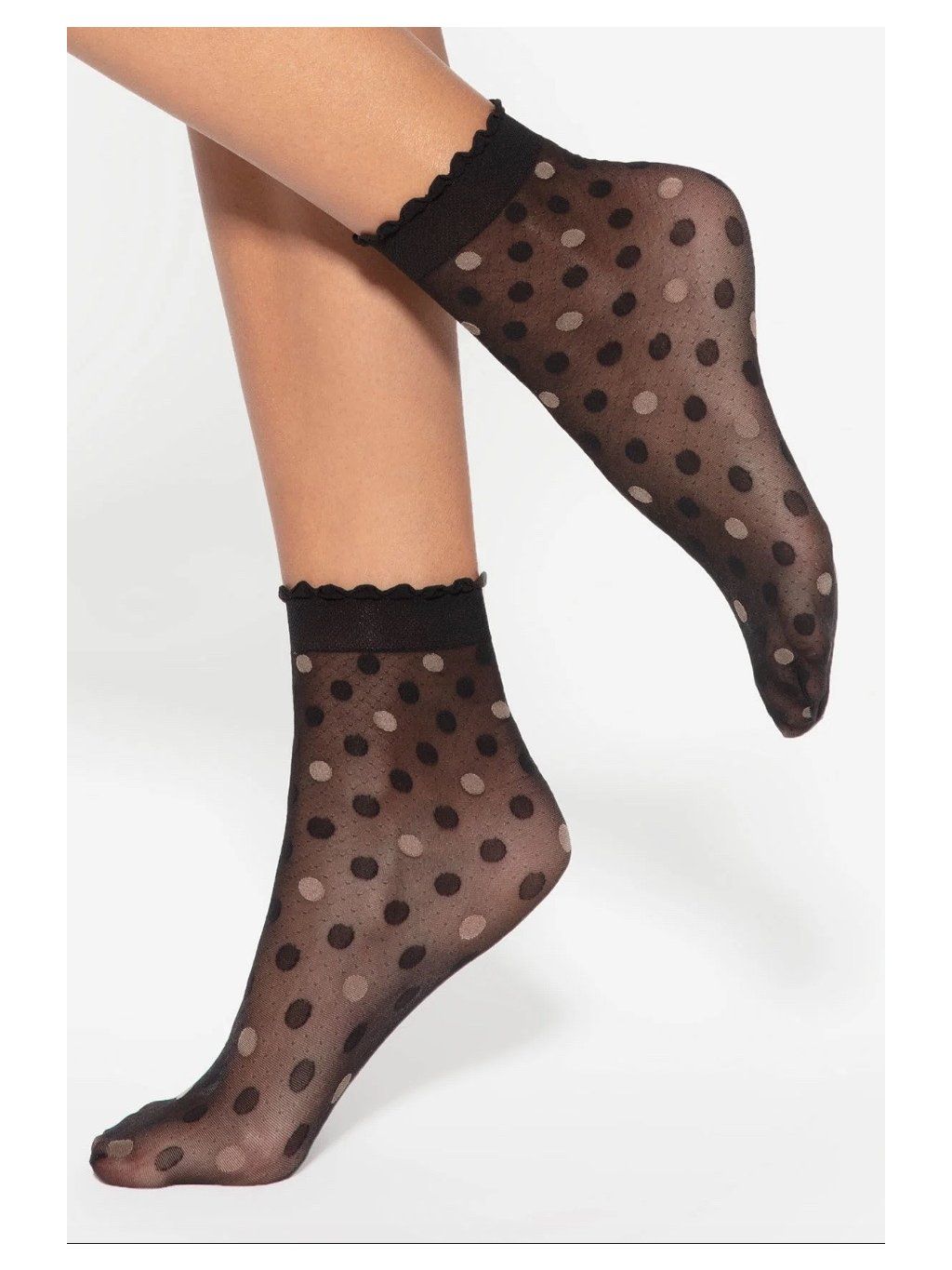 Silonové ponožky s černými a béžovými puntíky nesmí chybět v žádném šatníku, skvěle doplní celý outfit.